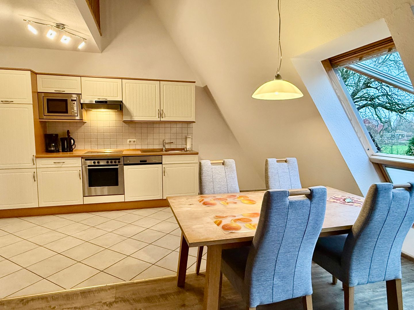 - helles, gemütliches Wohnzimmer mit Essecke und Küchenzeile