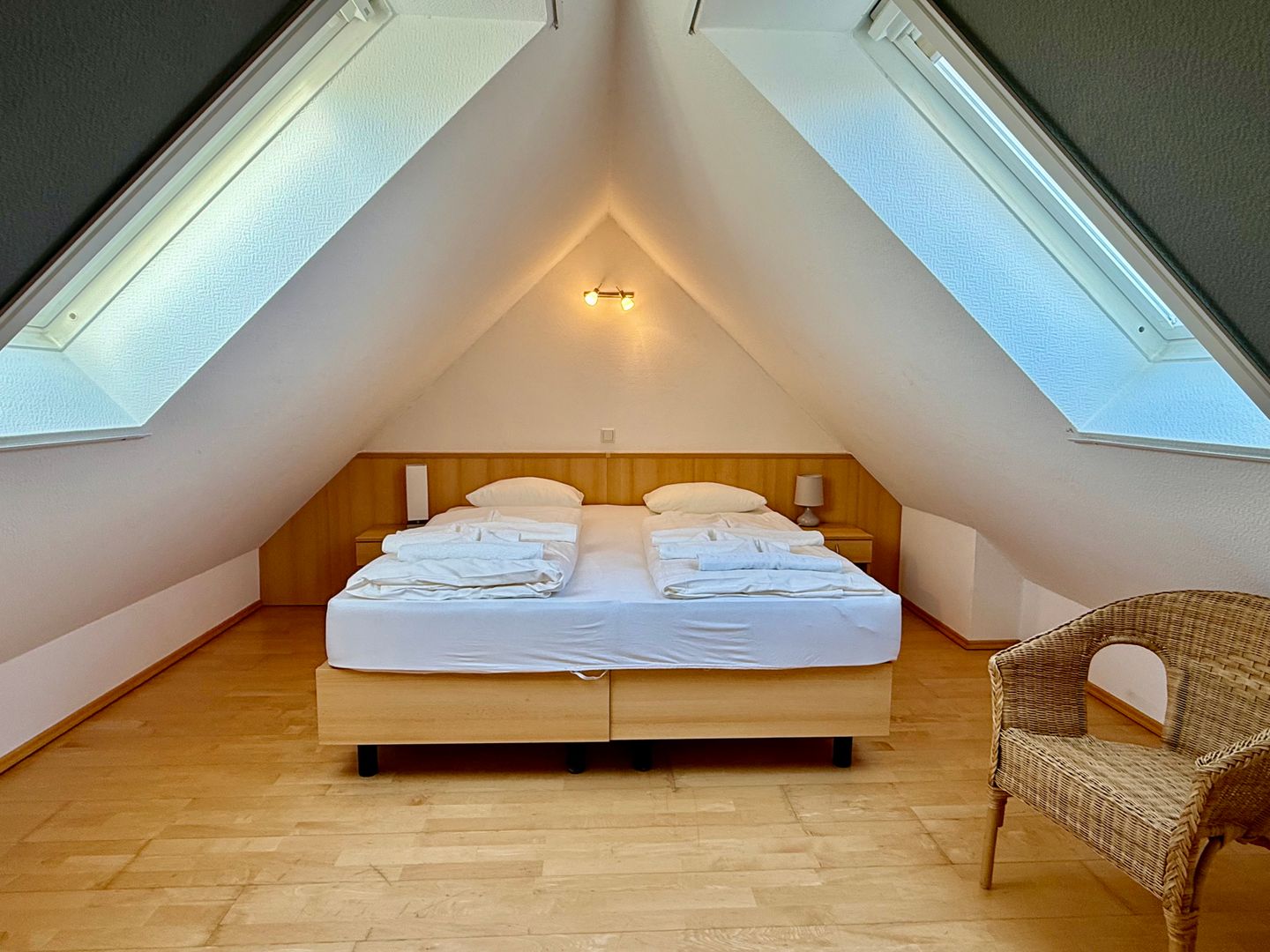 - Dachgeschoss-Schlafzimmer mit Doppelbett