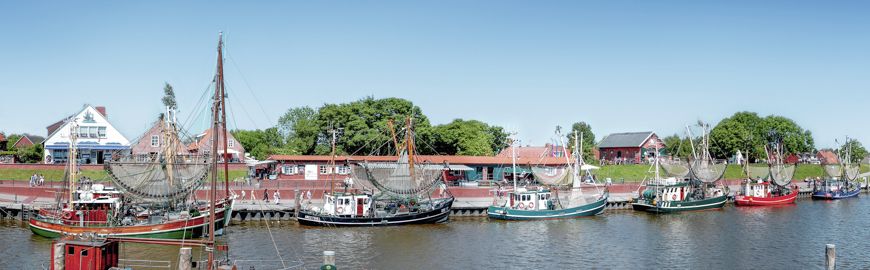 Der Küstenort Greetsiel ist bekannt für seinen Hafen mit Fischrestaurants, traditionellen Fischerbooten und Backsteinhäusern. Mit 25 Krabbenkuttern, die den malerischen Hafen im Fischerdorf ansteuern, ist in Greetsiel die größte Kutterflotte Ostfrieslands zuhause.